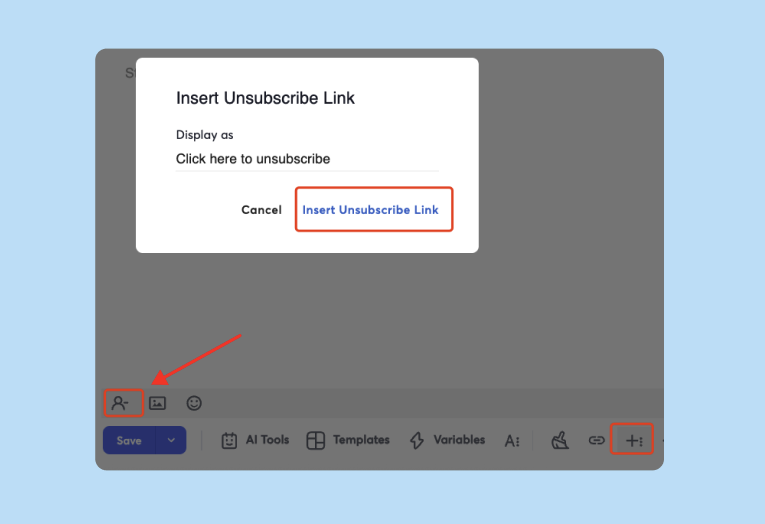 Instantly gives you a whole range of options when creating campaigns including added an unsubscribe option.