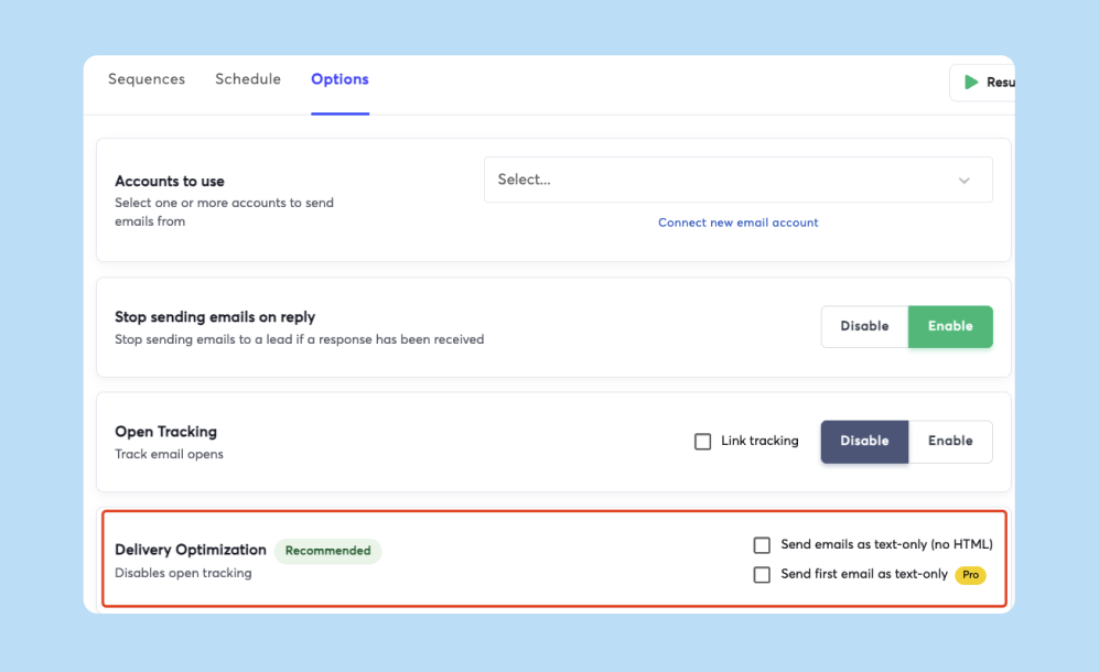 Connect your email accounts to an automated warmup service. Instantly includes unlimited warmup across all plans and operates a deliverability network of 4.2M+ accounts. The system ramps your sending from 5 to 30 emails per day over 14 days.