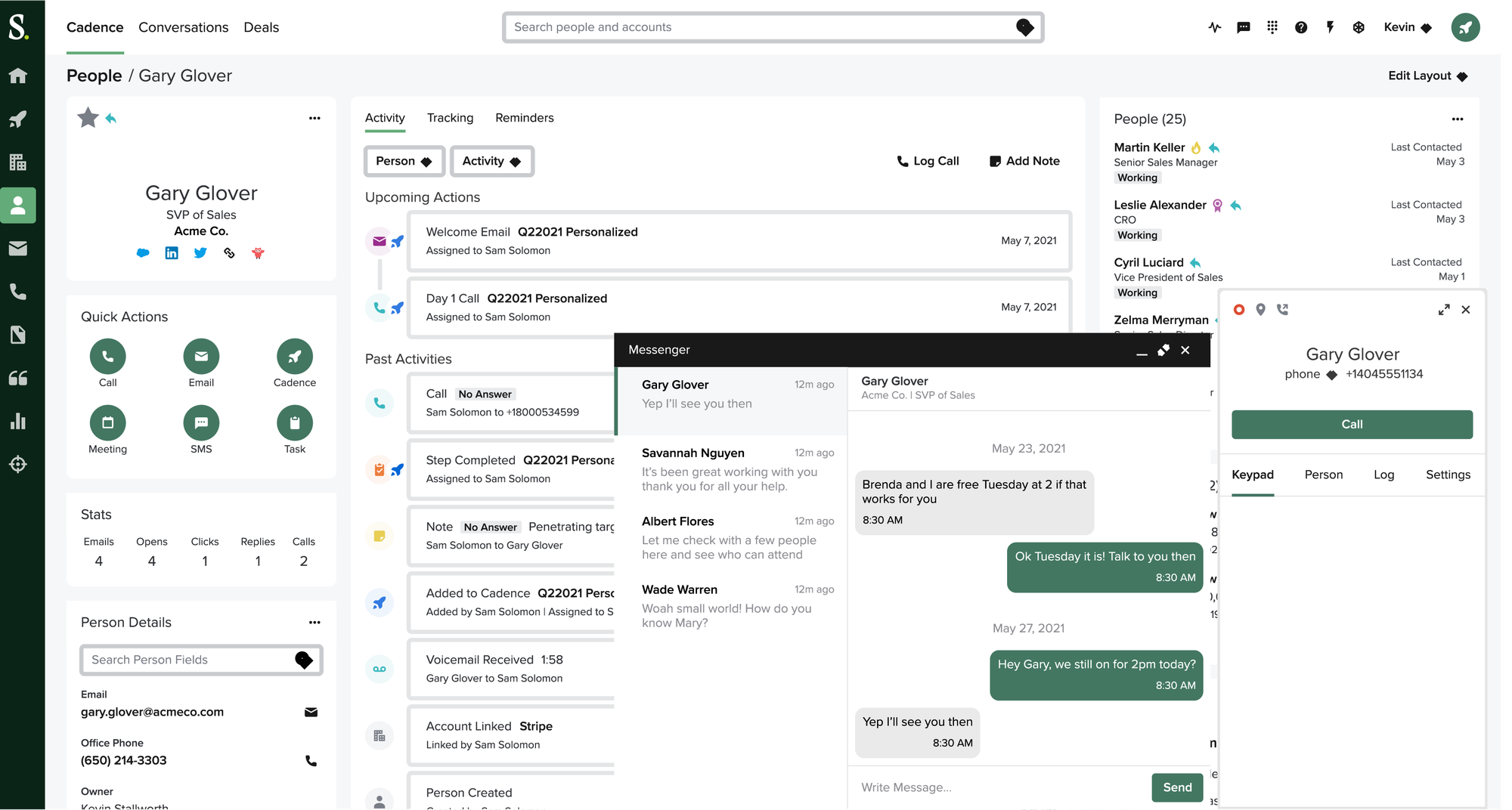- Multi-channel cadence orchestration. Email, calls, and social steps tracked against accounts and opportunities.