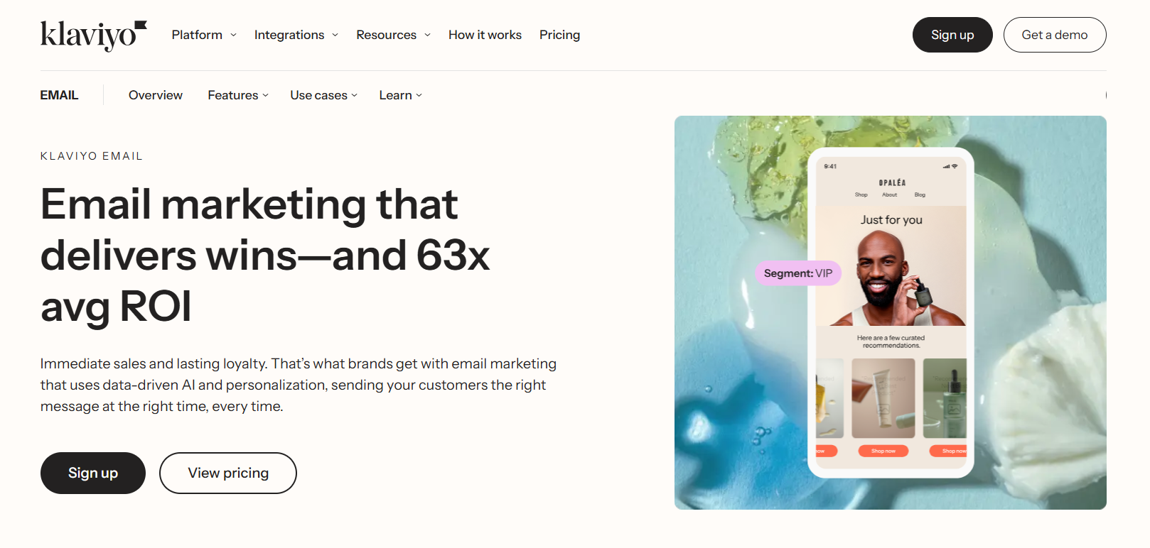 - Best for: Larger or fast-growing ecommerce businesses looking to manage emails and SMS campaigns