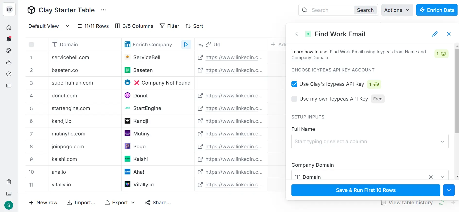 - Waterfall enrichment: Clay queries many sources in sequence to fill missing fields and reduce bounces. Use it to pull titles, LinkedIn URLs, technographics, funding, news, and more.