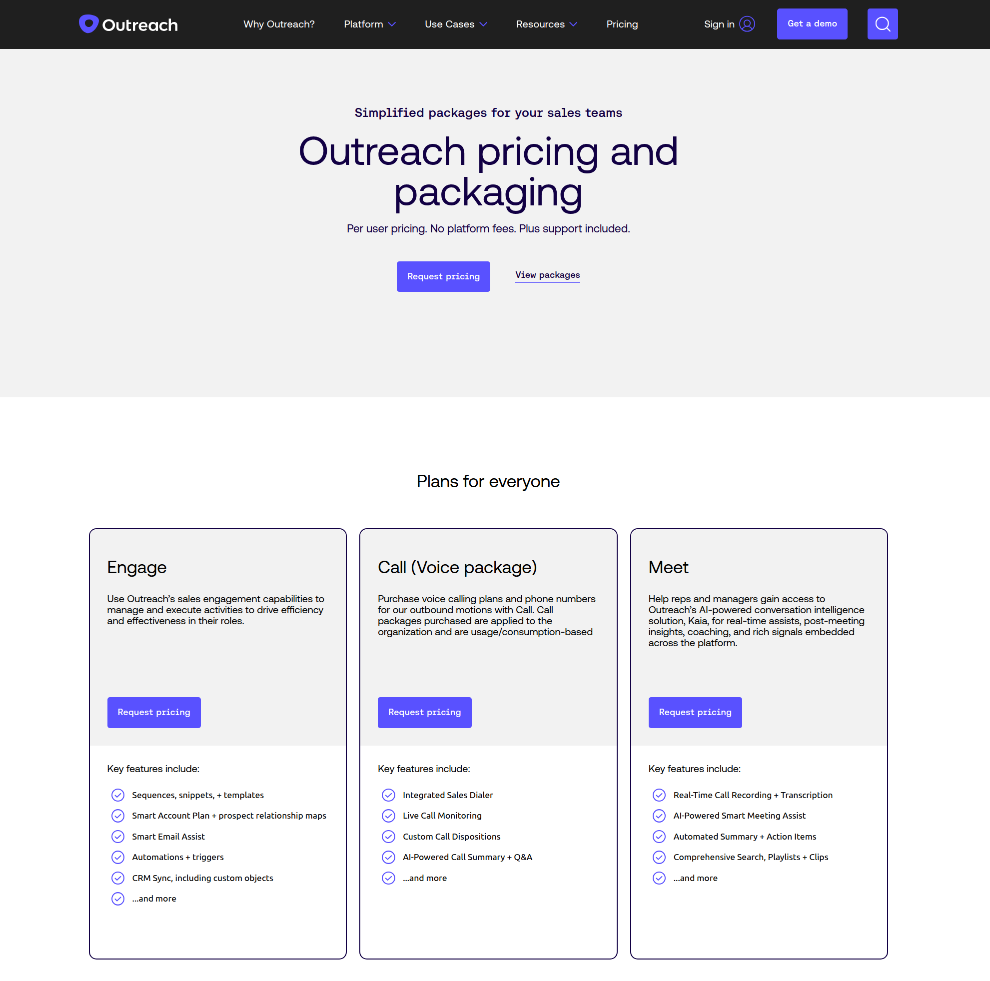 - Outreach.io: Per‑seat pricing maps cleanly to rep headcount and manager oversight. Costs scale with users and feature tiers.