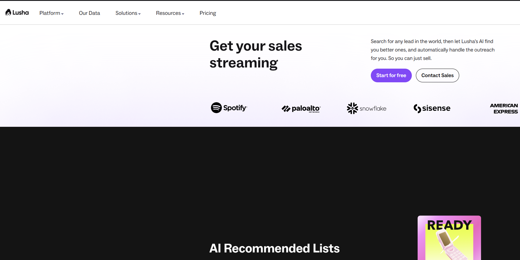 Lusha is a favorite among teams that need verified contact data and want full confidence around compliance and privacy. Its edge lies in high-accuracy business contact discovery paired with certifications like GDPR, CCPA, and ISO, so it’s especially useful for organizations in regulated industries or those running large-scale, multi-market outreach.